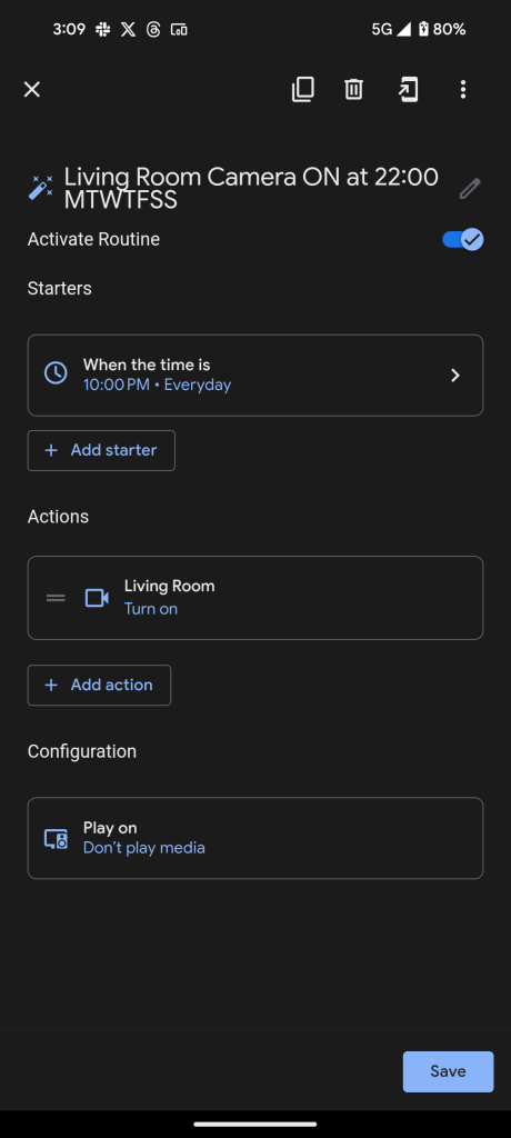 How the automation works is reasonably simple. Two automations are created. One to turn the camera on at a specific date or time, and the other to turn it off. This can get way more complex if you have more date and time conditions, but it gets the job done well enough.