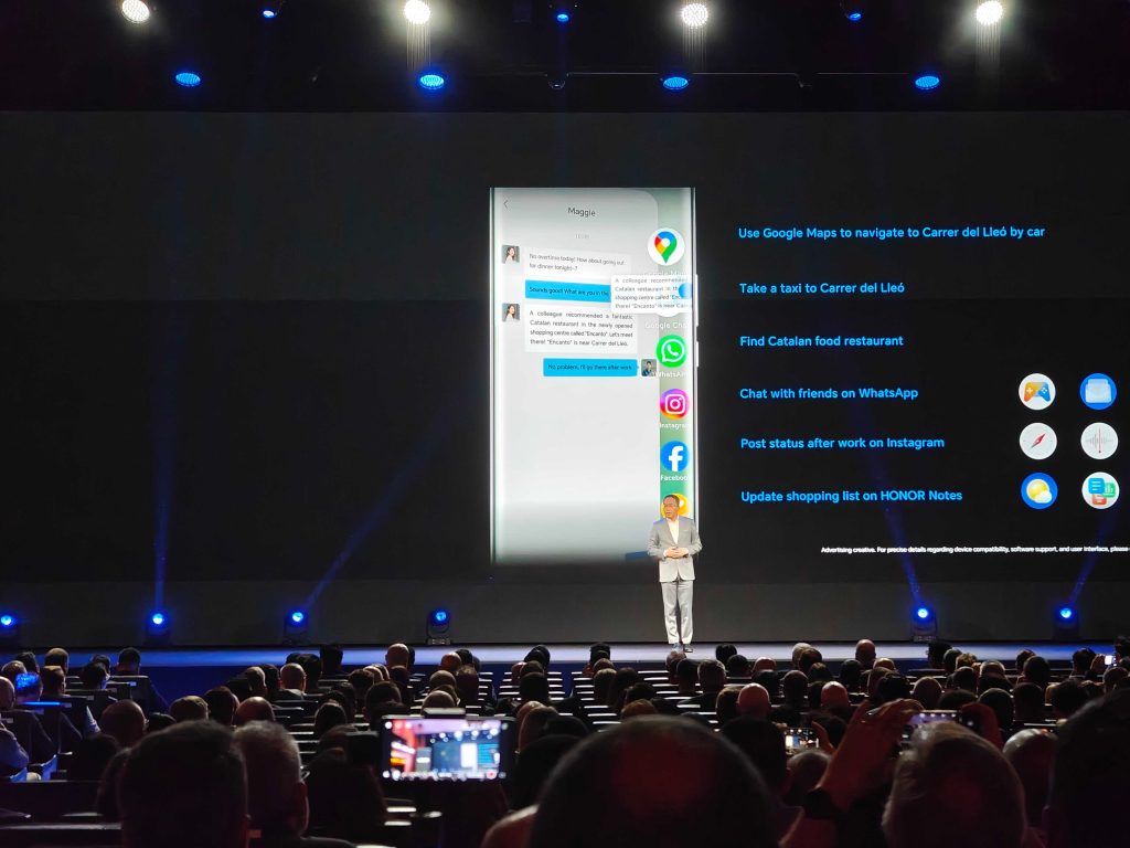 Honor explains that the feature can recognize addresses in a text message and offer to bring that information to Google Maps. You can just long-press a message and drag it to an app, with AI determining what the appropriate action is.