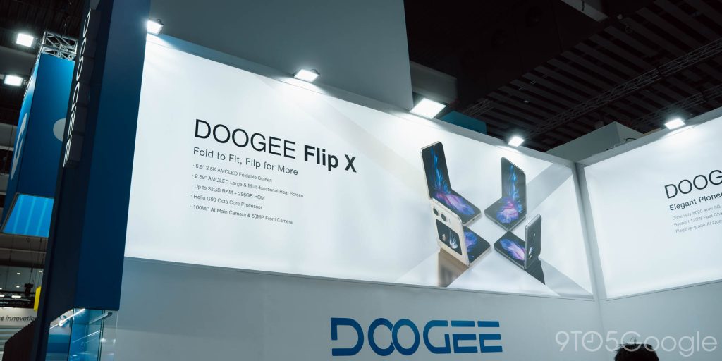 The last foldable I tried to get hands-on time with was the Doogee Flip X. This device, as Michael Fisher pointed out, is rather similar to the Blackview foldable, just with a different fit and finish. However, I didn’t get a chance to try it out because, well, it broke. When I walked up to check it out I only saw an empty slot and was told by an employee that the device broke sometime during the day. I came back not long after to find that the slot had been filled by another device, and was being somewhat blocked off by a few employees. Doesn’t really instill confidence, especially seeing as a banner at the company’s booth showed two different foldable designs, and neither were present at the booth any longer just a mere two days into the conference, especially seeing as the company was apparently aiming for a launch in April.