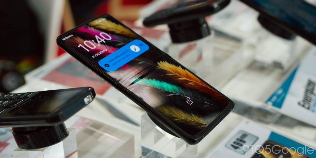 This more-rugged flip phone was perhaps the most unique of the bunch. It’s got the same basic package as the Blackview device – Helio G99, 12GB RAM, 256GB storage – but with a hinge that feels way stronger – almost spring-loaded – while also having slightly bigger bezels around the smaller display. This display also stood out to me because, as I walked up to the booth, the crease was hidden just enough to where I overlooked the device a few times.