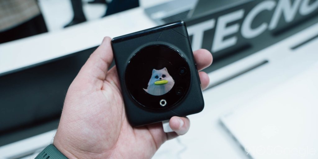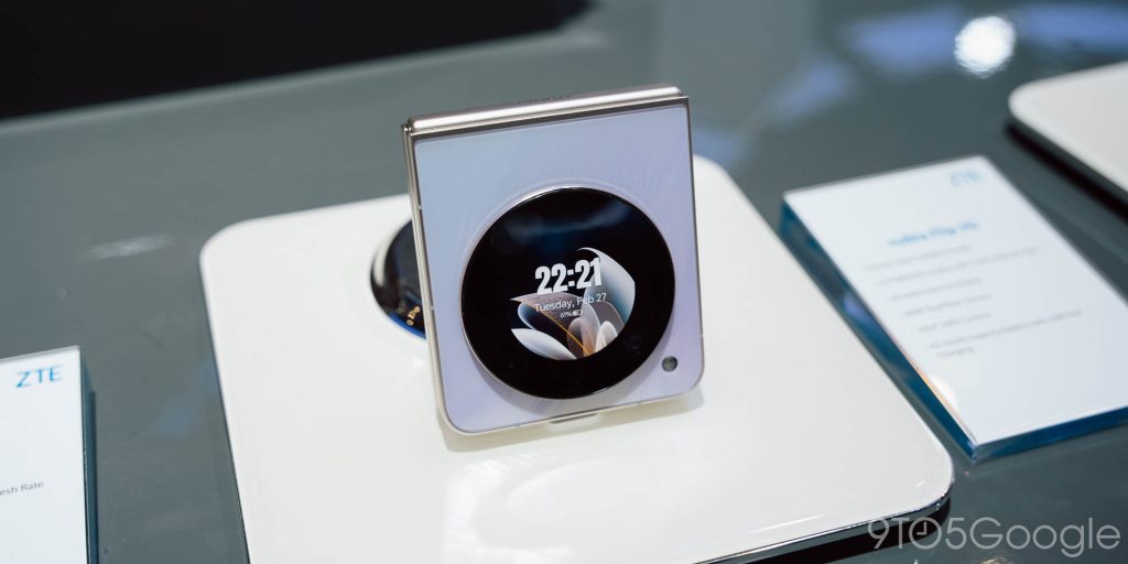Next up was the Nubia Flip 5G from ZTE. Similar to the Tecno, it has a circular outer display and really solid hardware. It feels like a slightly bigger Galaxy Z Flip 5, but a little sharper and clear-cut around the edges.