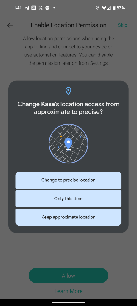 Even apps that should be using the “Nearby” permission, like TP-Link’s Kasa app, still demand “Precise” location access to allow the use of core functions of the app.