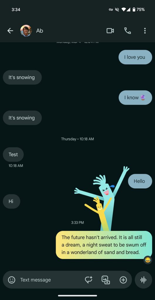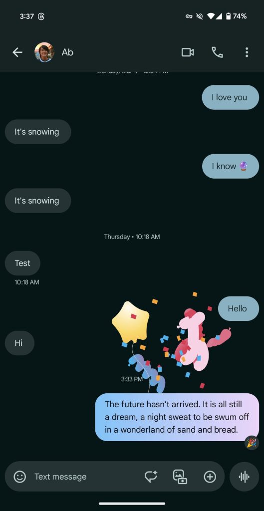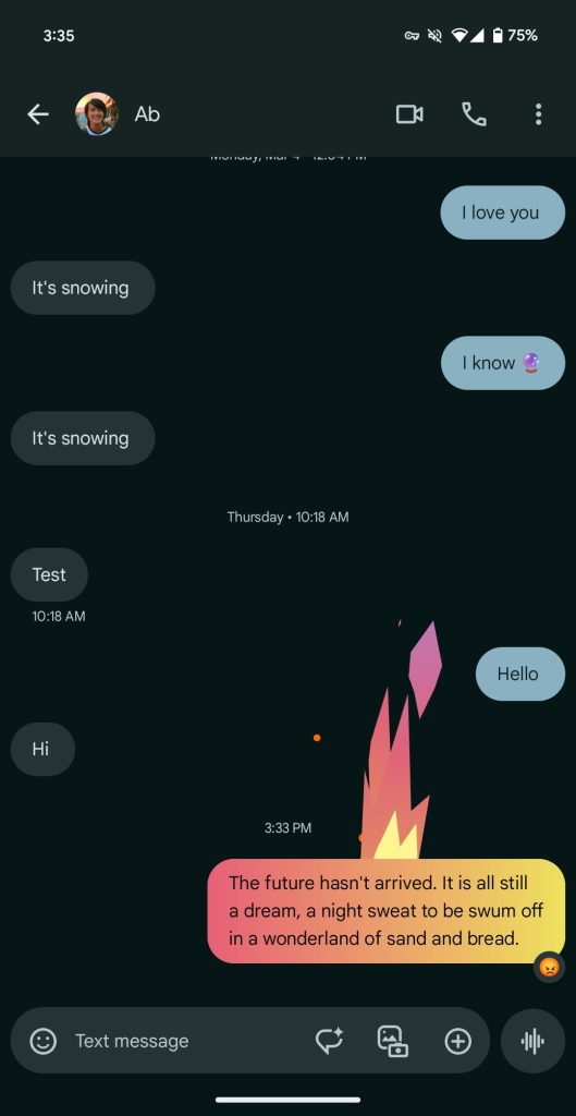 Some have complained that there’s no way to specifically disable these reactions. While they only last a few seconds, it’s a valid complaint and a high-level expressive features setting in Google Messages would be a good idea.