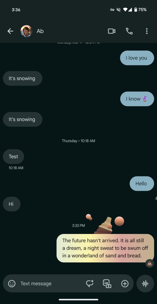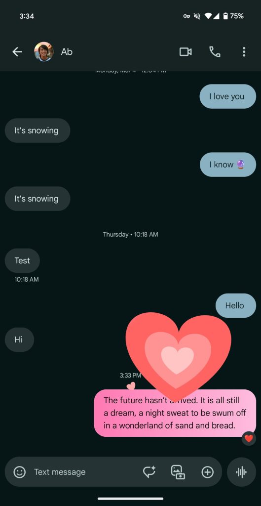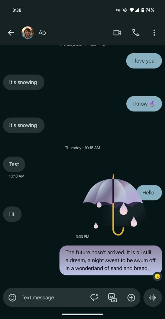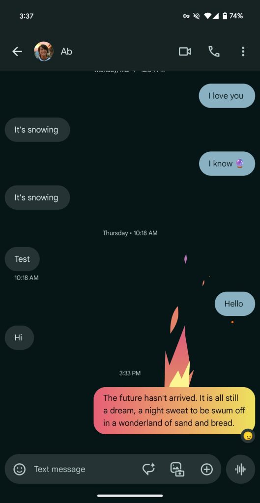 Some have complained that there’s no way to specifically disable these reactions. While they only last a few seconds, it’s a valid complaint and a high-level expressive features setting in Google Messages would be a good idea.