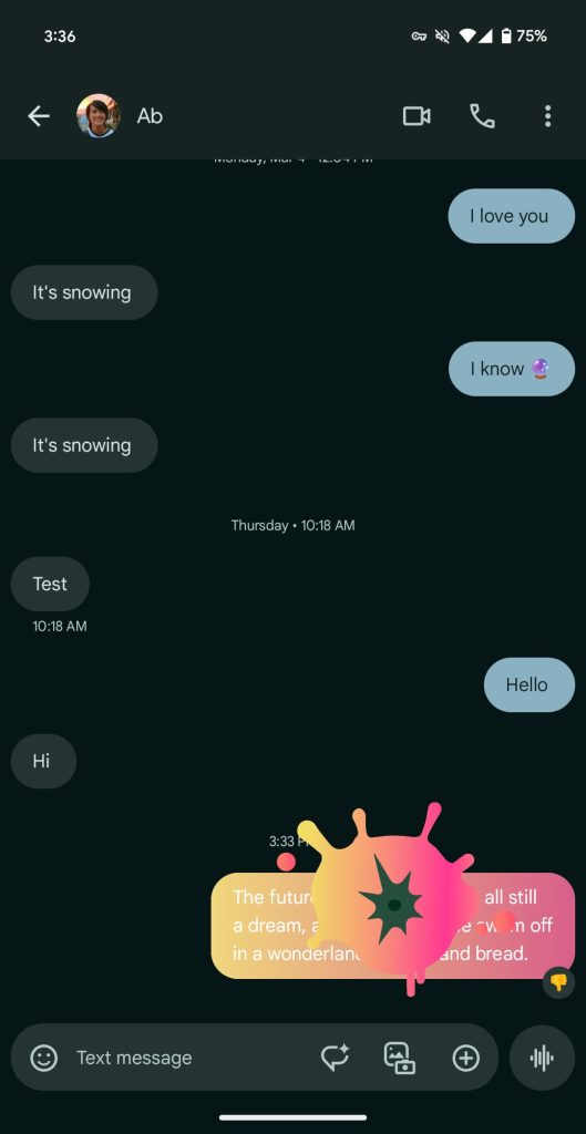 When you long-press on a message — SMS or RCS — and select thumbs up, “magic instantly unfolds as an animated trio of hands dances around the message bubble.” Google says this is “designed to add a dynamic twist to your chats.”
