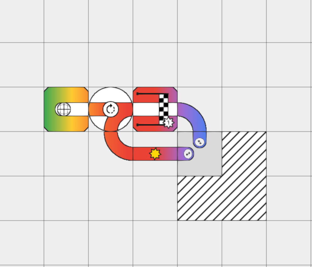 It involves placing a variety of tiles on the grid to create a path for your marble in an elaborate Rube Goldberg-esque machine made by Aperture Science — you’ll see.