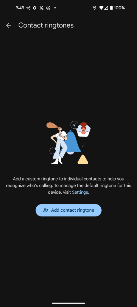 Prior to this, setting a custom ringtone through the Contacts app required going into each individual contact, tapping the overflow menu, and then selecting “Set Ringtone” before selecting the ringtone of your choice.