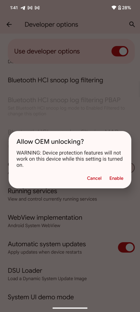IF you do install, toggle the ability to unlock your bootloader first. It can be a horrible mistake if you don’t. Unless you’ve got a second Pixel kicking around to test it out, just wait for the Android 15 Beta program.
