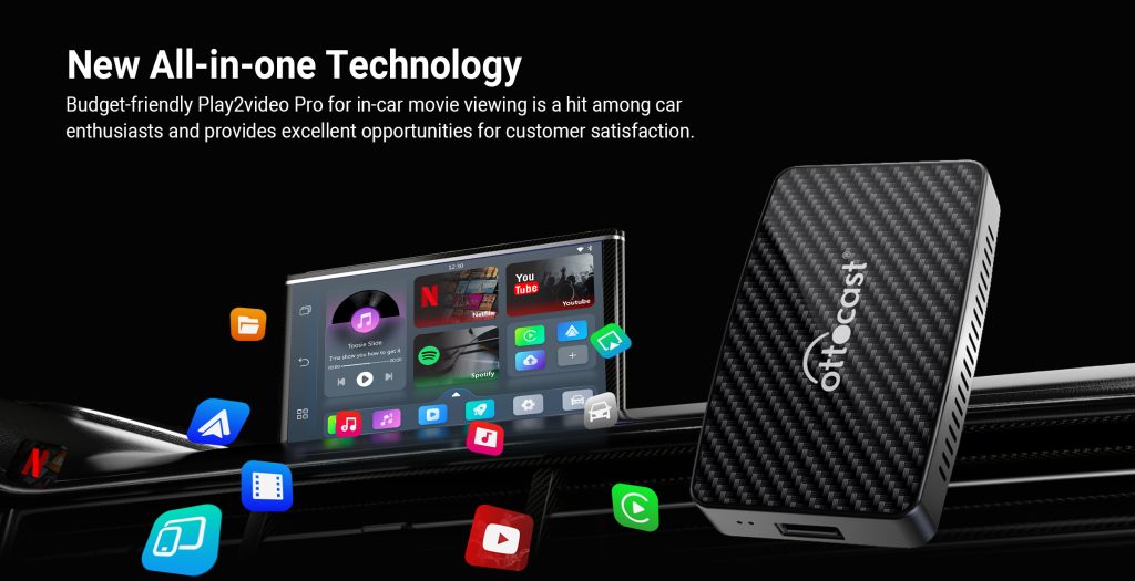 Moving up the lineup, the Ottocast Play2Video Pro carries many of the same core features of the Ottoadapter MX – including wireless Android Auto and CarPlay with low latency and automatic updates – but with one major tweak.