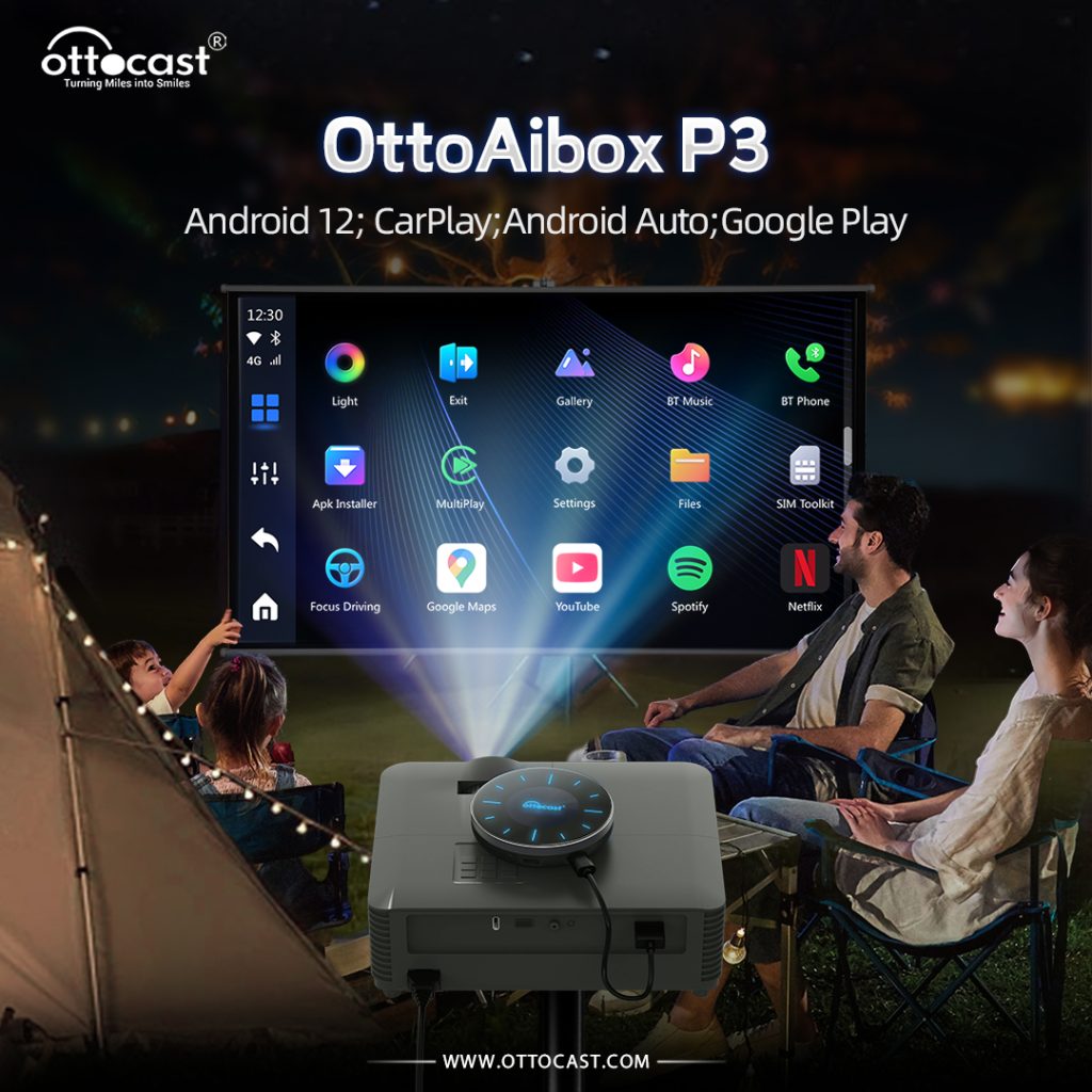 The OttoAibox P3 is also designed to be supremely portable. After a long road trip, you can take the palm-sized box out of the car and connect it to a portable projector or perhaps a hotel room television. Just connect it to one of Ottocast’s available remote controls. Wherever you go, your favorite content can go with you!