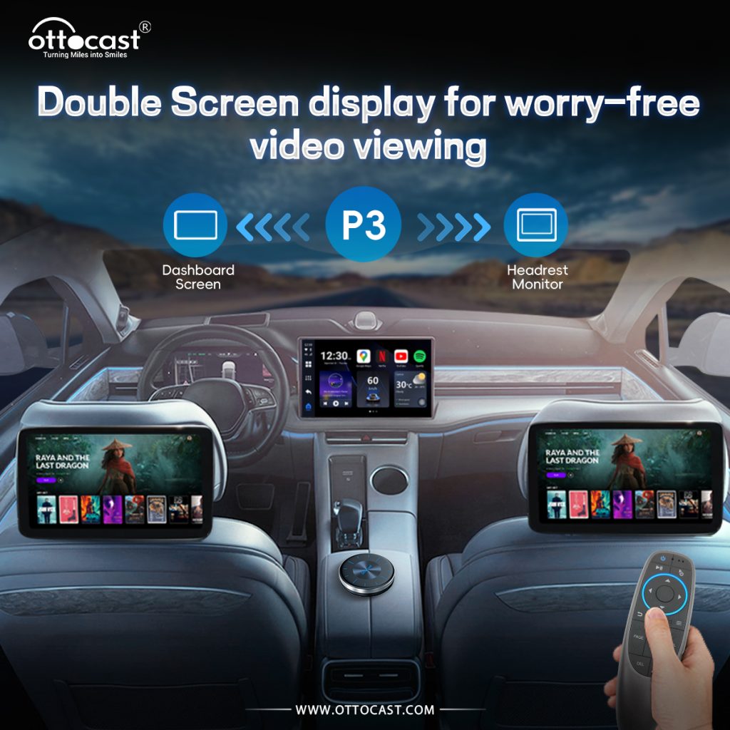 What really sets the OttoAibox P3 hardware apart, though, is its inclusion of a mini-HDMI port. This allows you to simultaneously display Android Auto/CarPlay or your OttoDrive apps onto your car infotainment display and a rear headrest screen, keeping your family entertained.