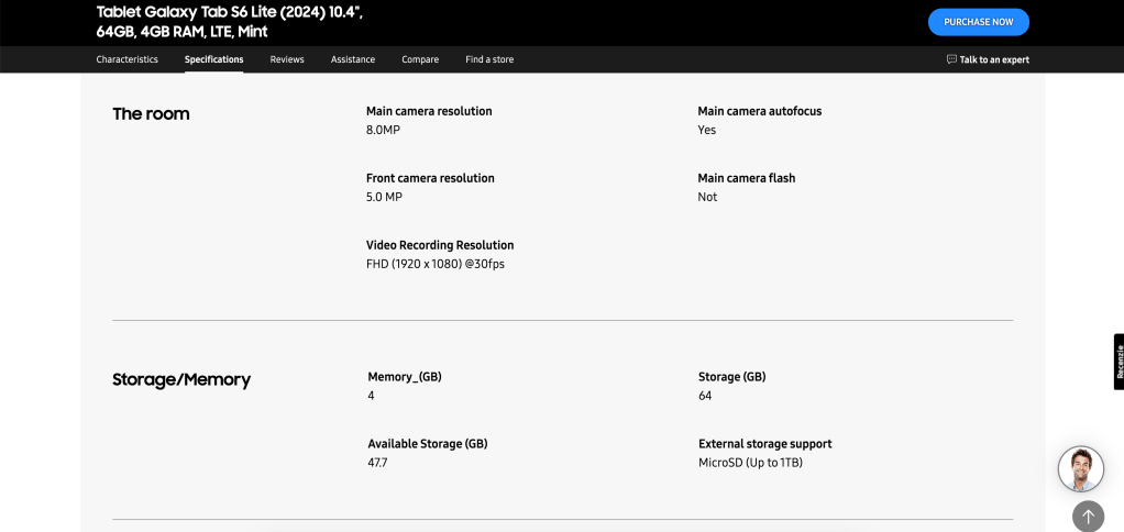 The tablet, as expected, has the same main specs as prior releases. 10.4-inch display with S Pen support, 4GB of RAM, 64GB of storage, a microSD card slot, and an 8MP rear camera backed up by a 5MP front-facing camera.