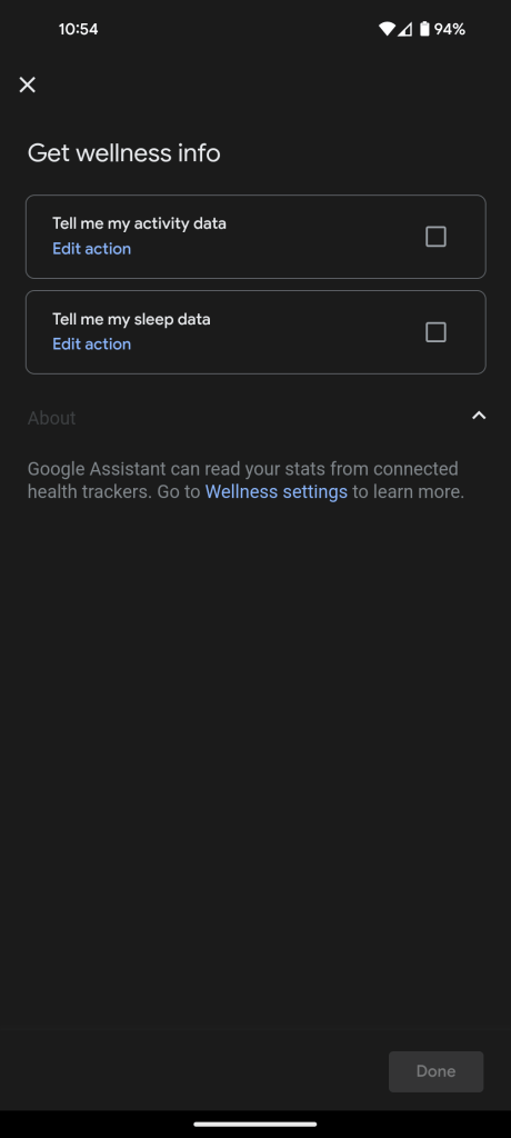 Under the “Automations” tab in the Google Home app, there’s a new option for routines. “Get Wellness Info” links with Google Fit or Fitbit to read out your available data as a part of a routine or automation. For example, your “Goodnight” routine can now read out your steps and activity throughout the data, as well as your sleep data from the night before.