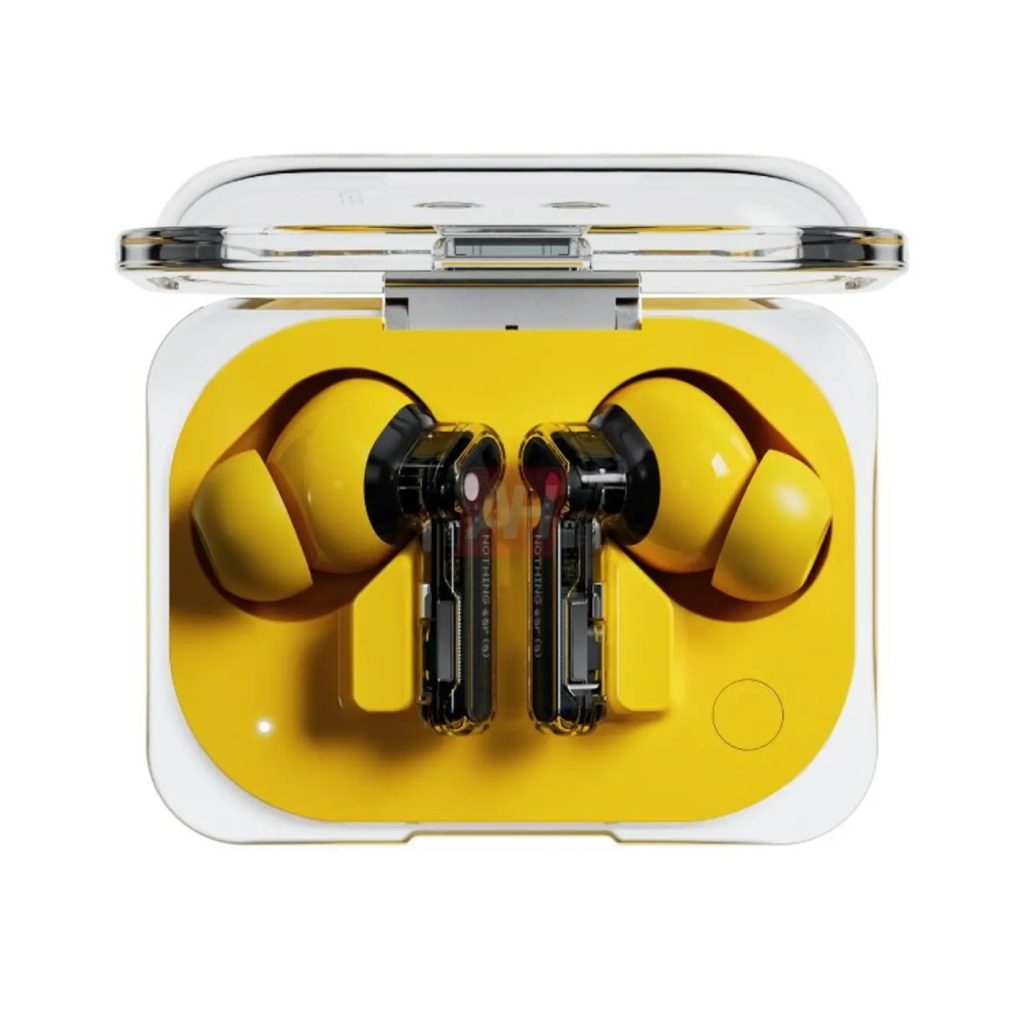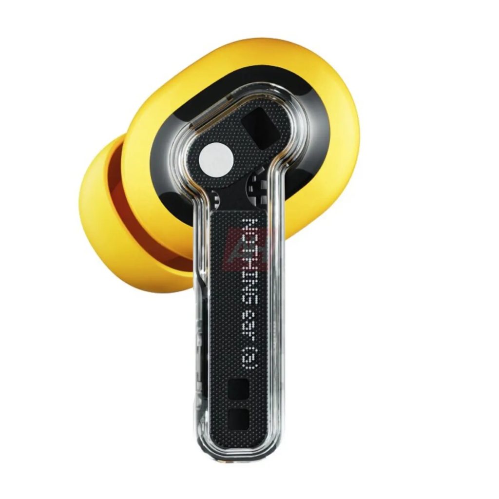 A bigger addition here is an alleged new color variant. Ear (a) are shown not only with a smaller case design, but also a yellow variant. The case has a yellow insert in the back, while the earbuds are yellow on the bit that sits in your ear.