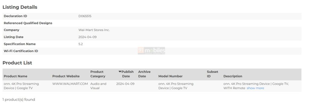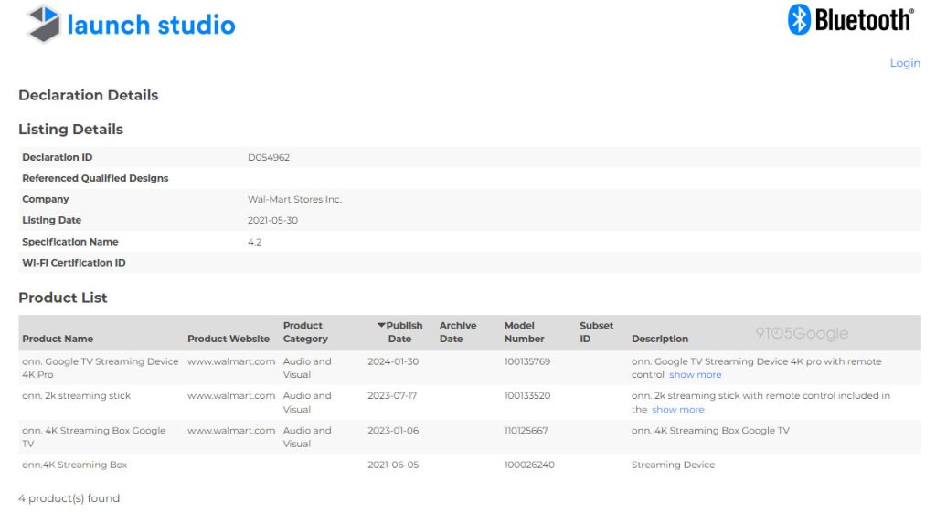 Now, it seems another Google TV streamer is coming. 91Mobiles spotted a listing at the Bluetooth SIG that directly names an “Onn 4K Pro Streaming Device” with Google TV.
