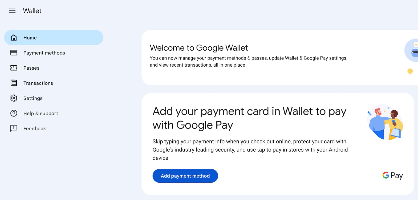 The Google Pay site — pay.google.com/pay/home — received a Material 3 redesign last year. You can find the Google Wallet version at wallet.google.com/wallet/home: “You can now manage your payment methods & passes, update Wallet & Google Pay settings, and view recent transactions, all in one place.”