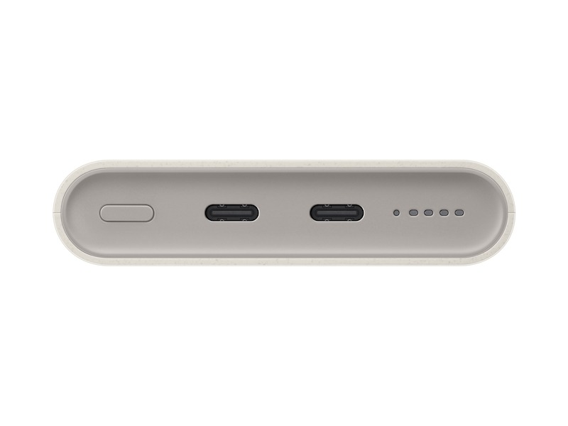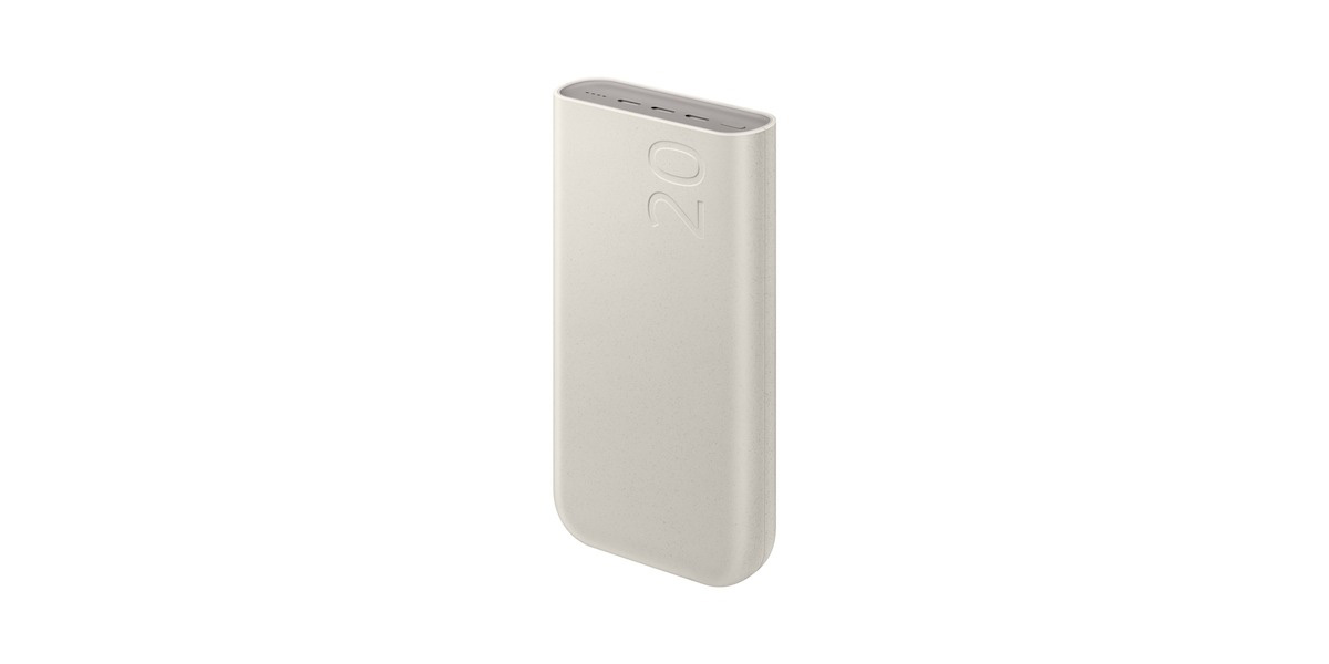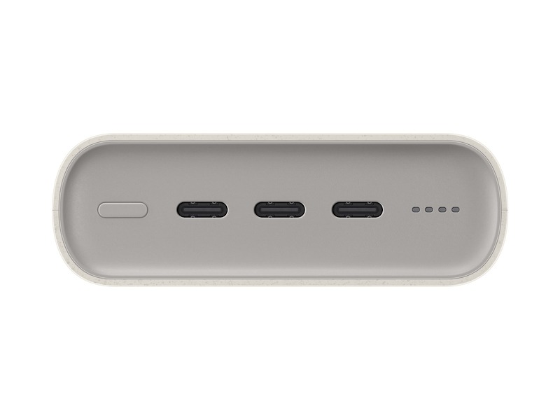 There are two new Samsung batteries available. The first is a 20,000 mAh battery bank that Samsung rates at up to 45W charging. That matches the maximum rate of Galaxy flagships, and is also enough to top off a tablet or, in a pinch, even a USB-C laptop. The bank has three USB-C ports and comes with a color-matching cable included in the box.