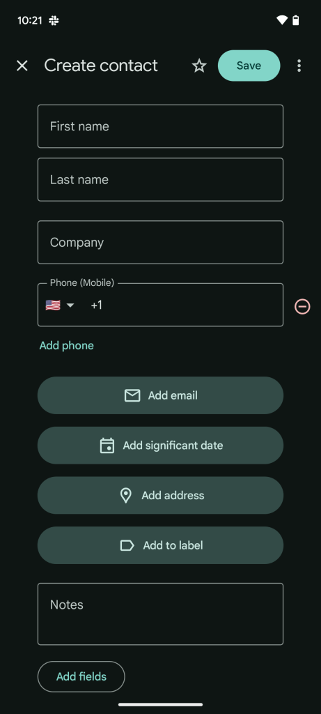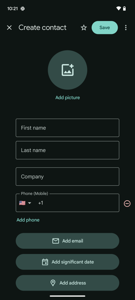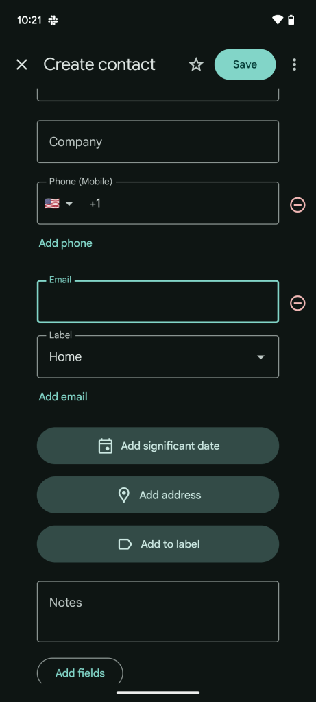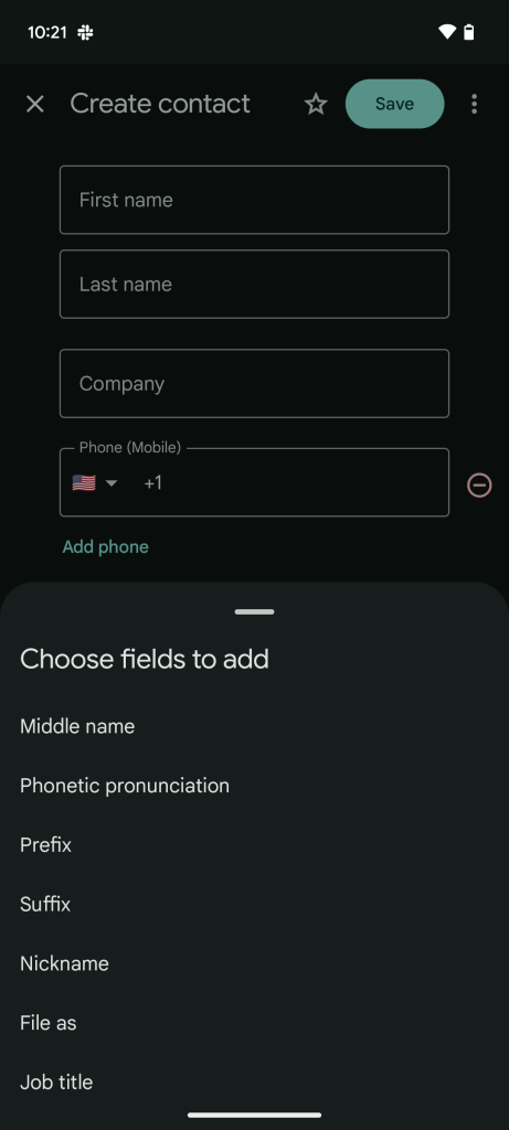 Hidden behind the scenes in Google Contacts v4.30.50.628193927, the app is working on a new page for adding a new contact to the app. This new page is simplified considerably from the existing design, and is does so by hiding fields that aren’t used on all contacts.