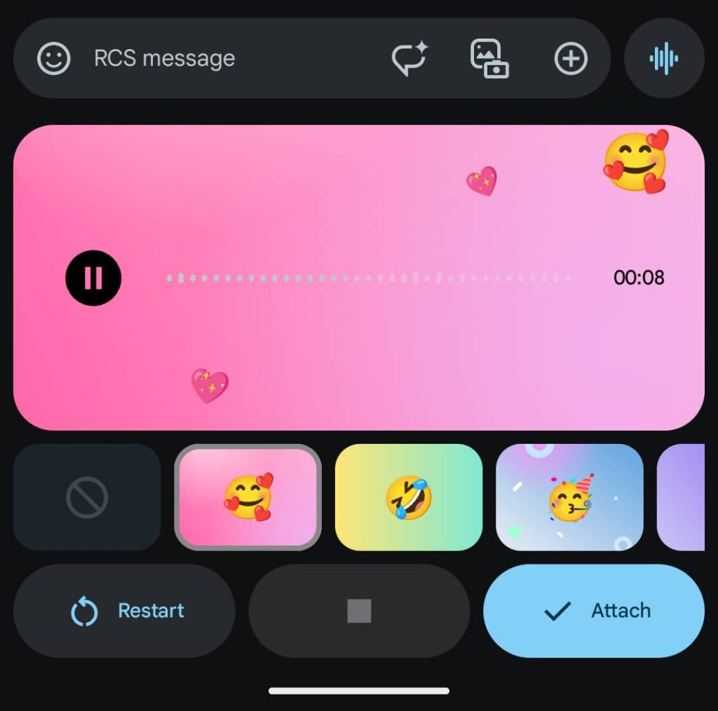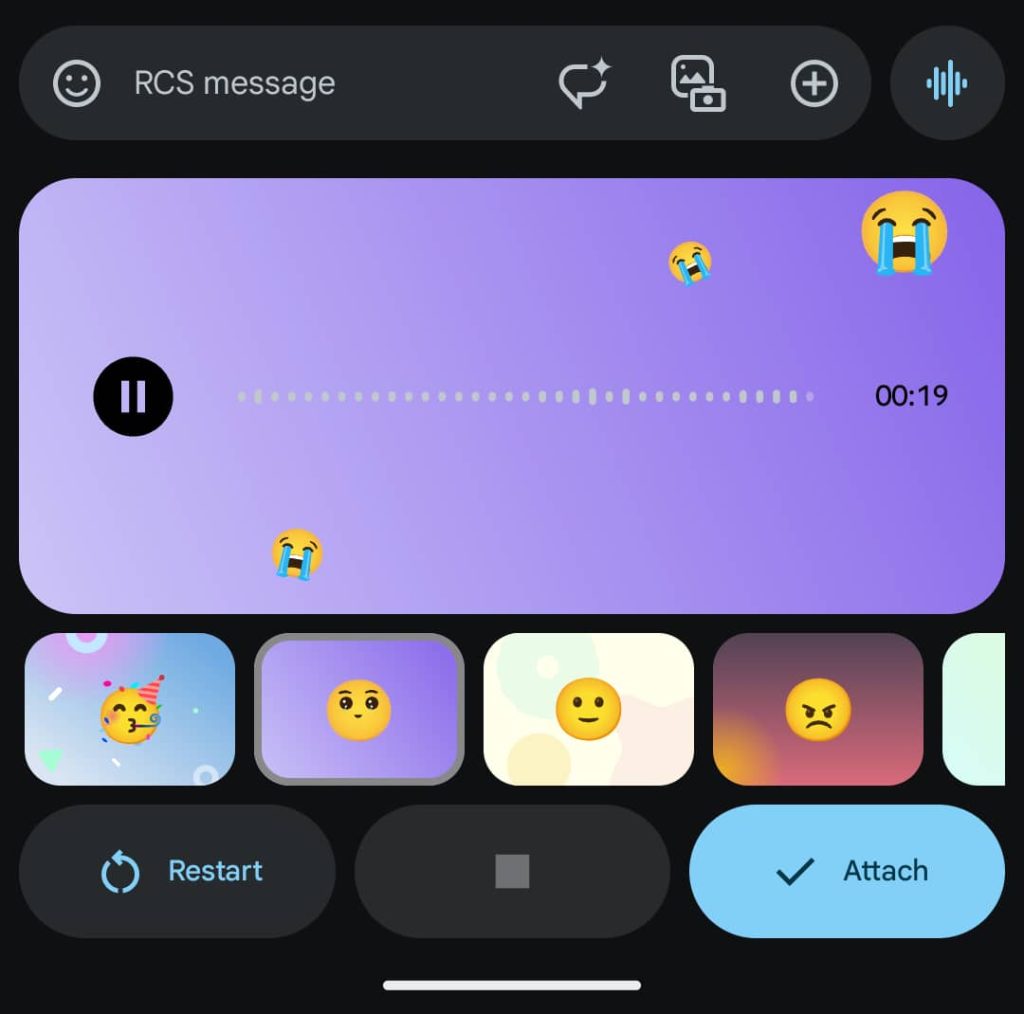 The latter lets you pick from one of nine Voice Moods that basically adds an animated emoji background to the audio message card, which saw a Material 3 tweak in March. If you turn off expressive animations, it goes static.