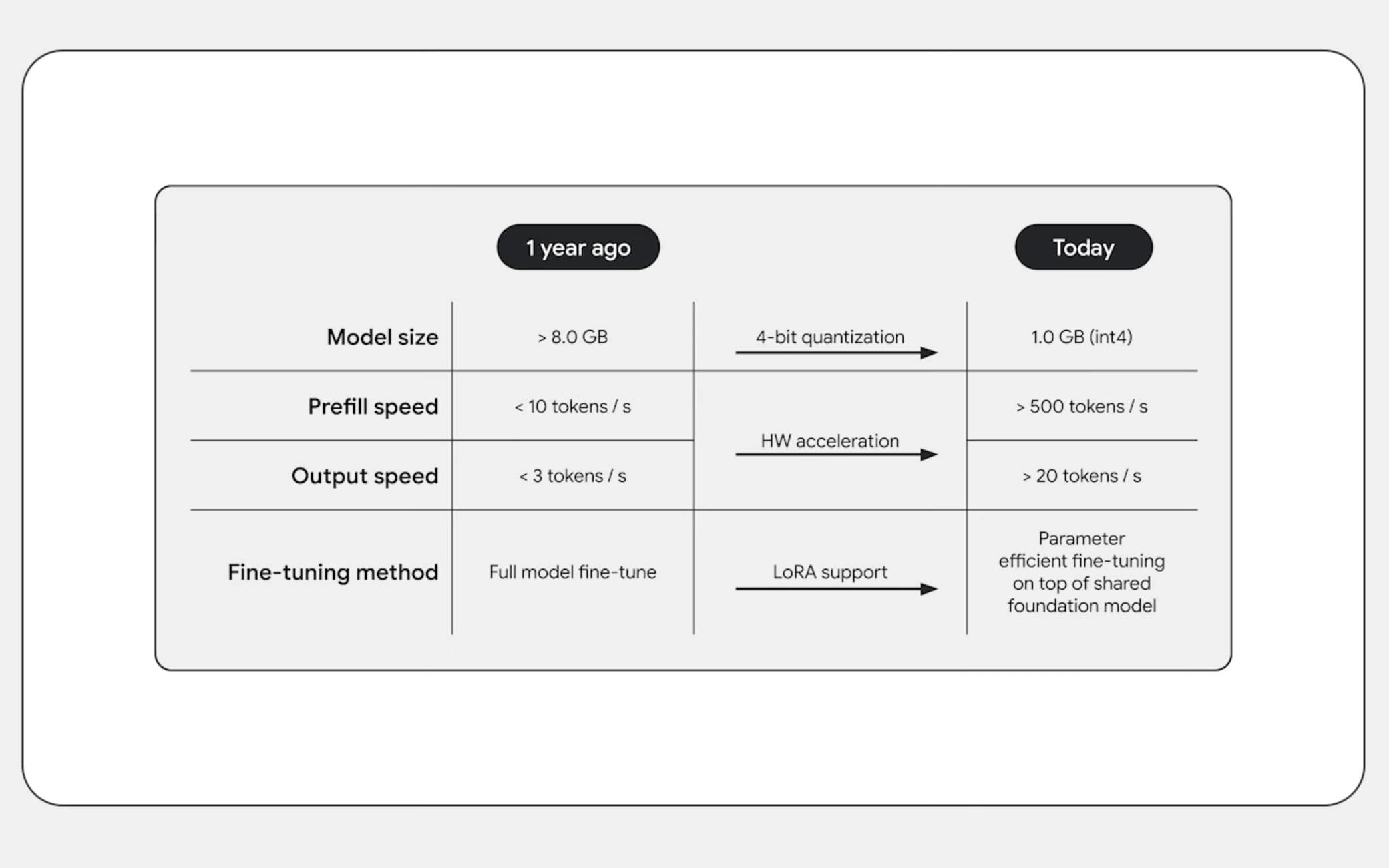 Google also noted the state of on-device gen AI a year ago and what improvements have been made since then, like hardware acceleration: