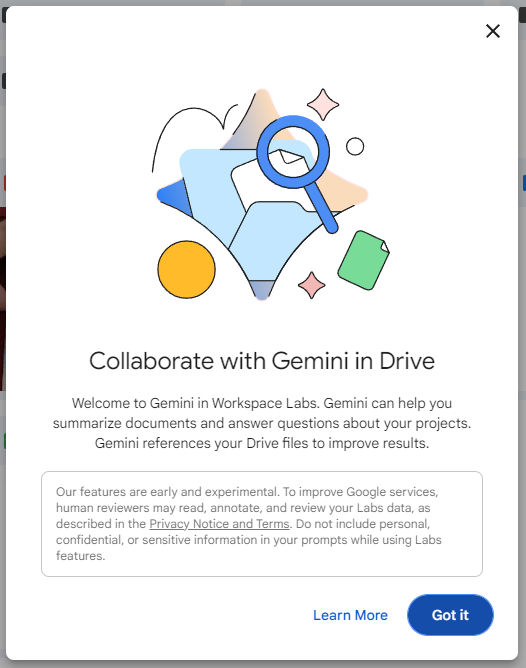 We’re seeing Gemini’s new side panel in Gmail, Drive, Docs, and other Workspace products as of today. This does require, though, that you are enrolled in Workspace Labs. If you’re already enrolled, Gemini is likely appearing on the side panel. Google will show a large pop-up when the functionality goes live on your account as pictured below.