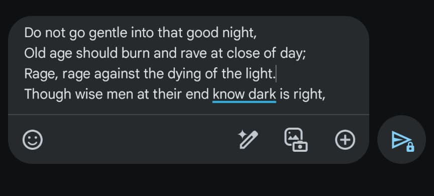 Meanwhile, this change makes the text field narrower, with the ‘plus’ and emoji buttons taking up their own columns. I prefer the current design in that regard, while you’re still limited to four lines of text before having to scroll.
