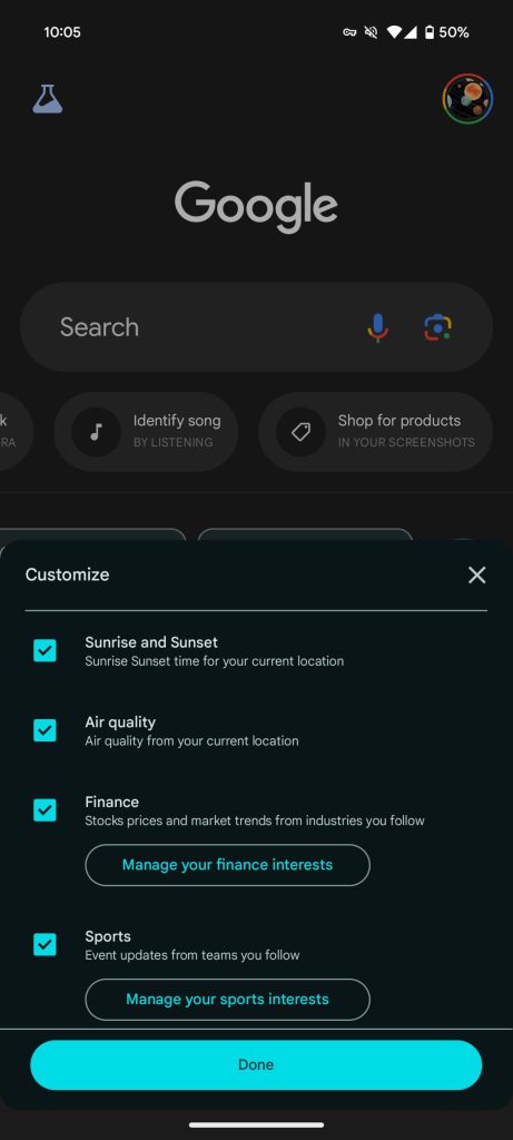 This fifth checkbox is widely rolled out on Android and iOS, but we haven’t gotten Sunrise and Sunset to actually appear yet. The card will appear at the top of Discover inside the Google app and to the left of your Android homescreen.