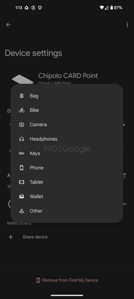 There’s a settings menu where you can rename the tracker (it defaults to the product name) and change the “category” of the object it’s attached to with options such as bag, wallet, and others. Notably, there’s also a way to be “guided” to the tracker’s location. While no UWB is used, the Find My Device app will point you in the general direction of the tracker as you approach it simply by telling you that you’re getting closer.