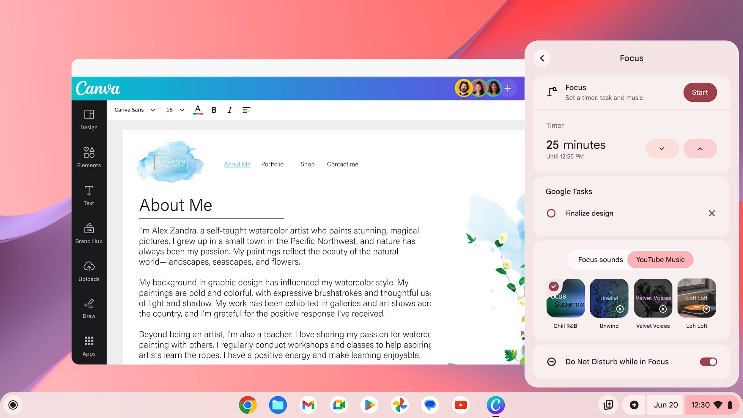 A Focus feature elevates Do Not Disturb by letting you set a countdown and select a YouTube Music playlist or “focus sounds.”