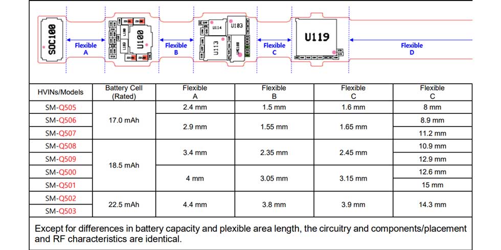 It’s also worth noting that the sizing will start at ring size 5 and go up to size 12, though model SM-Q503 is unaccounted for in that graph and may be a size 13 or simply be a placeholder. The largest two look to carry a 22.5mAh battery cell with an 18.5mAh cell and a 17.0mAh cell following down the list.