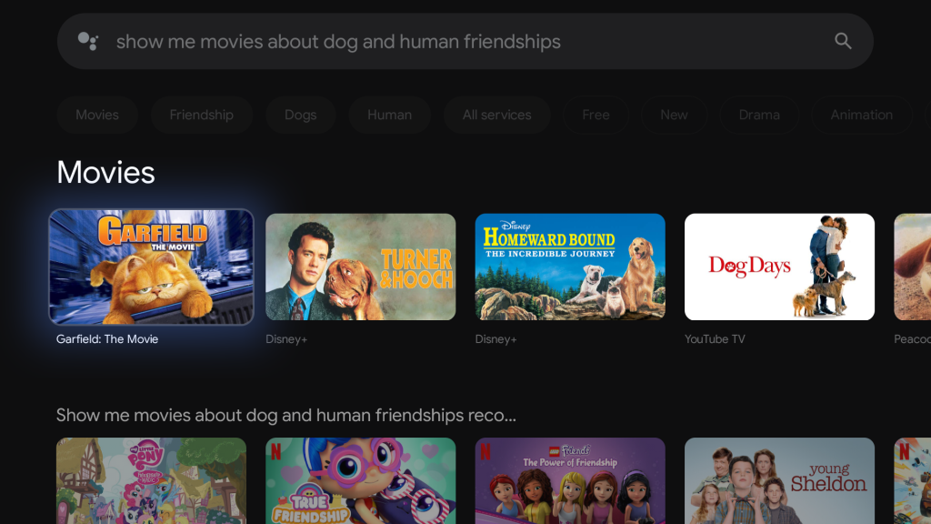 • “…show me movies about dog and human friendships.”