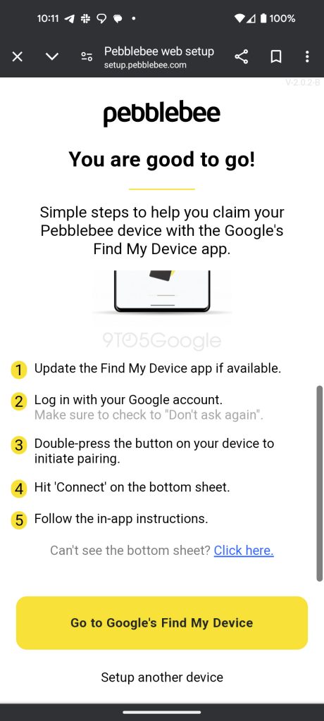 Setting up Pebblebee’s trackers for the Android Find My Device network is perhaps the easiest product setup I’ve seen in a while. Like the Chipolo trackers we set up earlier this week, Pebblebee uses Fast Pair for setup. Each tracker has a sticker on it, though, which includes a QR code that leads to a web app that explains the setup process in detail.