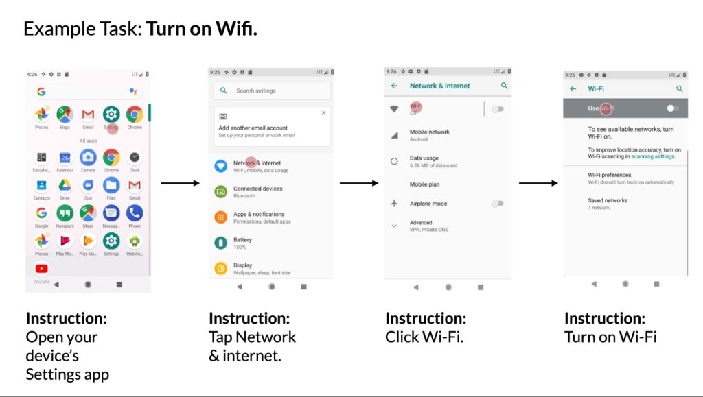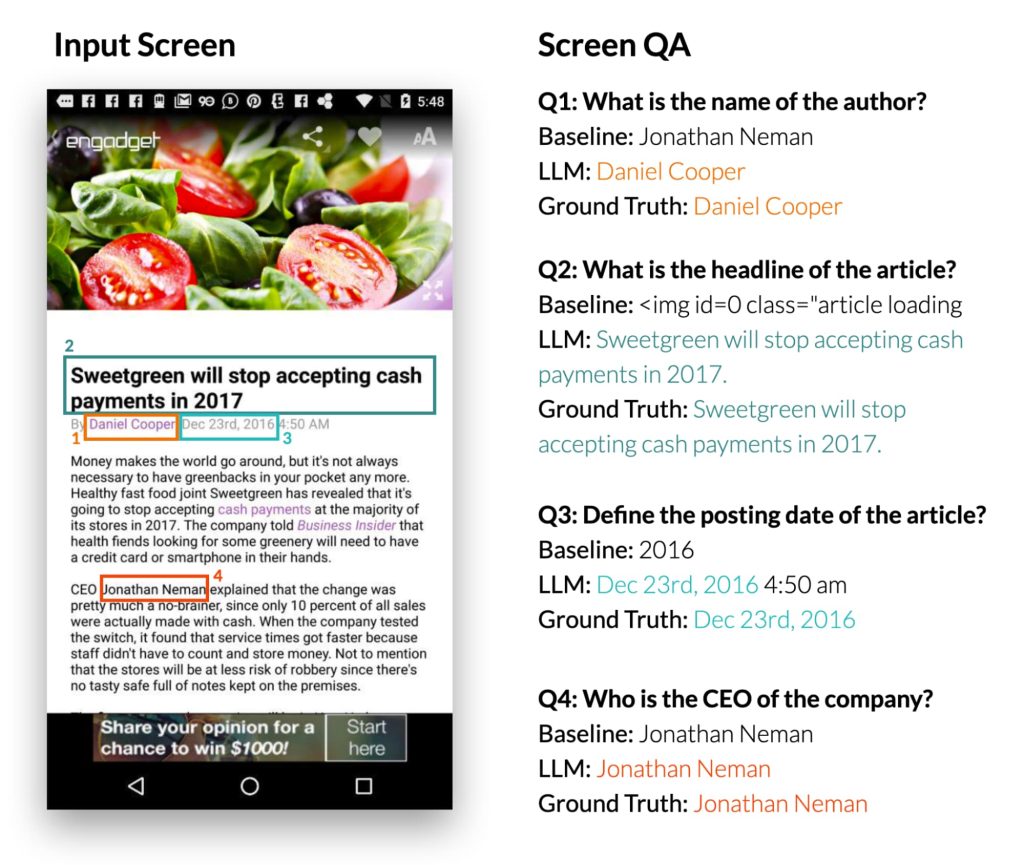Google Research has been working on this with “Enabling Conversational Interaction with Mobile UI using Large Language Models.” Its LLM approach can answer questions about content that appeared in the UI, and control it after being given a natural language instruction.