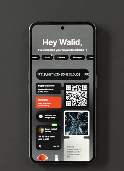 The other new idea is an AI-powered voice companion. This is described as multimodal, peronalized, and “friend-like.” The copmanion has animated “eyes” in a homescreen overlay, and Nothing suggests it might integrate with Glyph lights or on the lockscreen in the future.