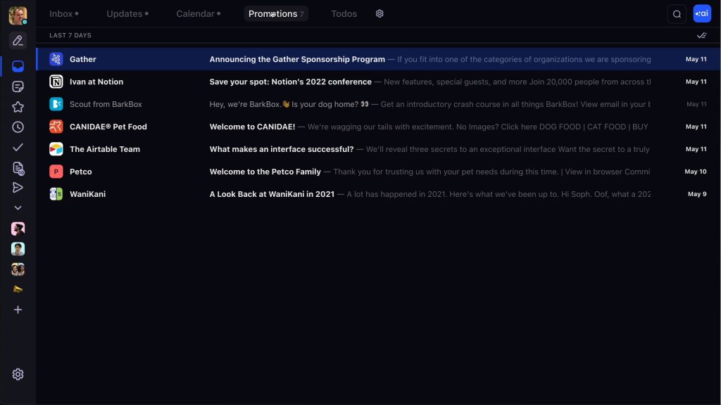 You can also use Gmail filters or Shortwave’s auto-apply rules to automatically apply a label to emails and then create an Inbox Split based on that label. Each Split lives in its own tab, allowing you to create lots of separation between specific email or sender content.