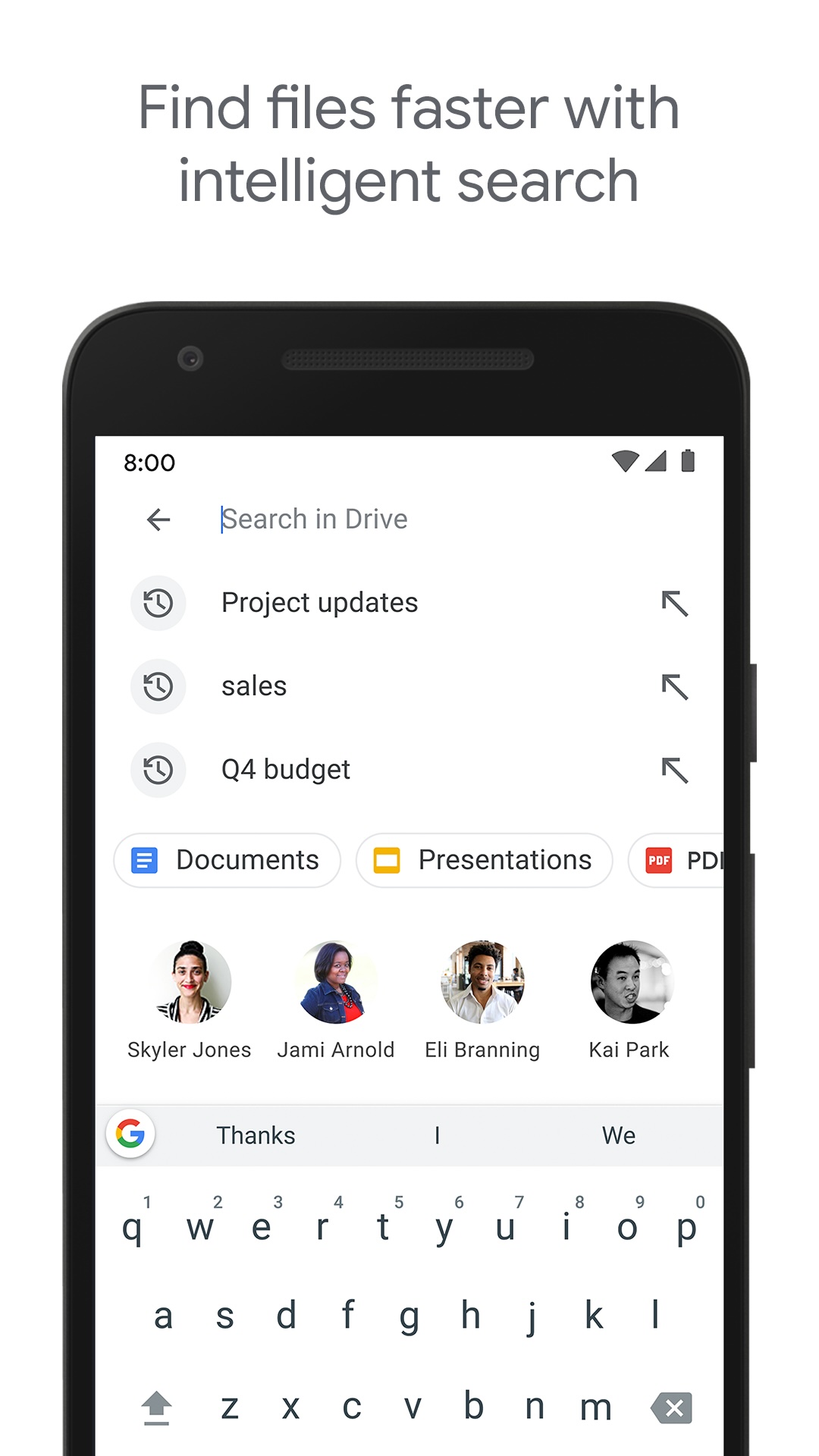 While the other Google Workspace apps have modern screenshots, Google Drive does not. There’s also an appearance by a version of Gboard that integrated Google Search.