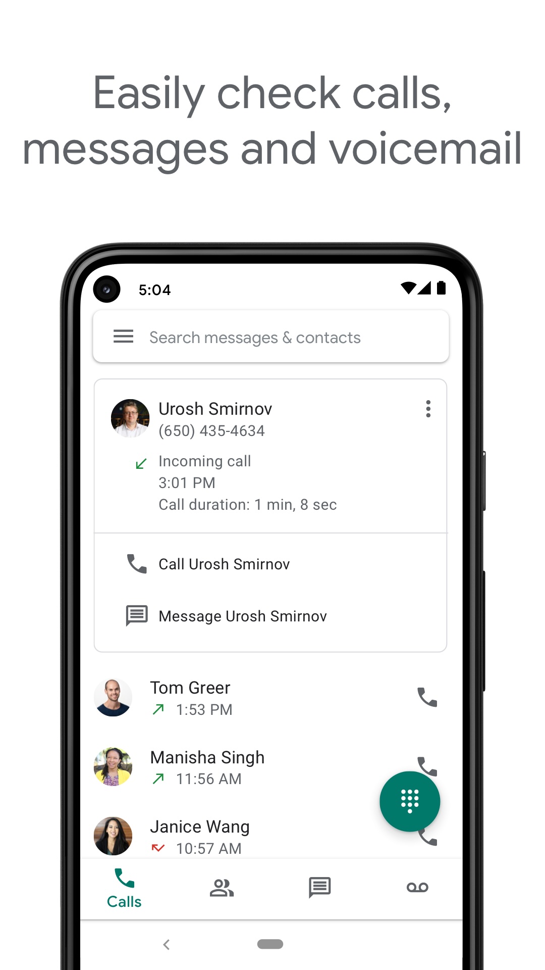 Speaking of navigation, there’s the 2-button layout in the Google Voice screenshots. Besides a Pixel 5, we see the pre-Material You redesign.