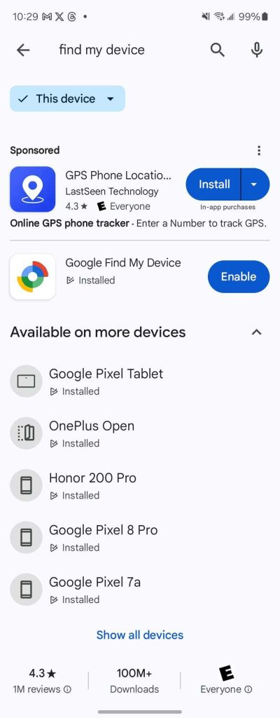 Since the Find My Device app on Android was previously only used in the rare occasion where you lost a phone or tablet, it could easily fall into this “sleep” setting that Samsung uses. That prevents it from getting updates. My Galaxy Z Fold 4, as just one example, has been in active use lately, but still had the old app version because I hadn’t used the app on that device yet. I had to manually go into the Play Store to get the update (opening the app also “wakes” it up, resuming auto-updates from the Play Store).
