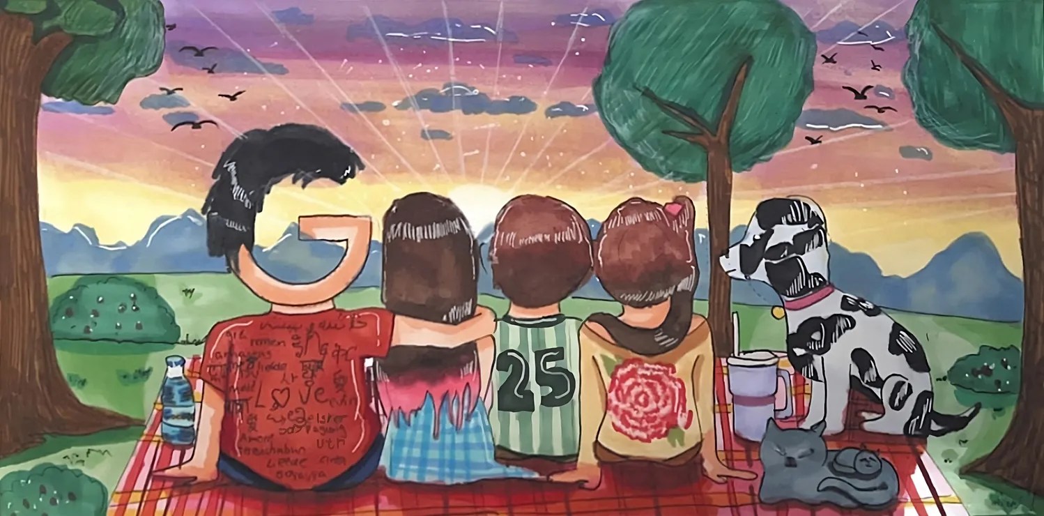 “My wish for the next 25 years is, I wish my family would laugh more, watch sunsets more, eating dinner together, family would stay together and that no one would die alone. In this drawing, I drew a family that loves each other a family that would risk their lives to each other, a family that would be there for eachother a family that would be patient with others shortcomings.”