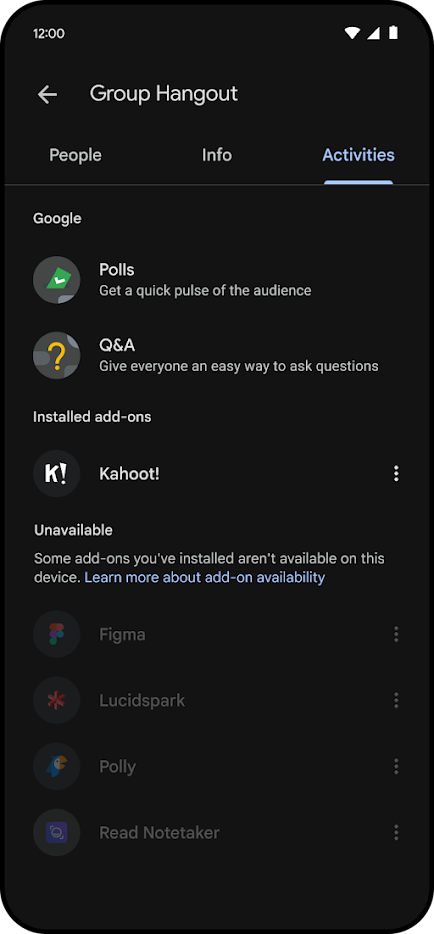 Meanwhile, Google is bringing support for Meet add-ons to the Android app. These third-party apps, like Kahoot! and Figma, are available during video calls. It joins built-in features like Polls and Q&A.