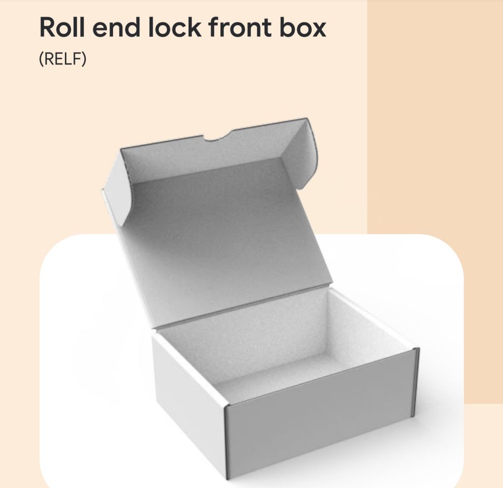Roll end lock front box: “A versatile structure featuring a front panel with interlocking tabs for closure. The design offers a balance between protection, familiar opening and easy assembly.”