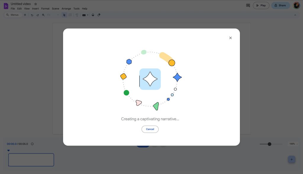 This app is aimed at “telling stories in work environments,” like making team recaps, announcement videos, and training reels. (Google will offer a version for education that lacks generative AI.) You enter a prompt that describes “your idea with goal, audience, and length,” with the ability to add any documents uploaded to Google Drive.
