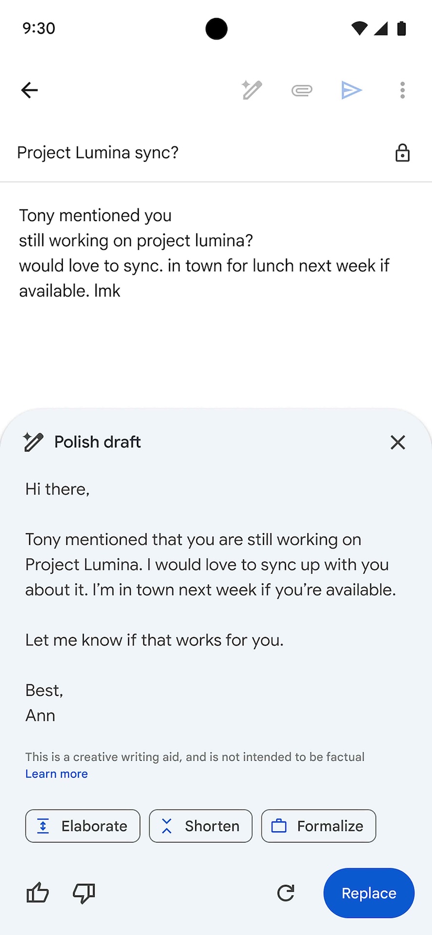 At Cloud Next 2024 in April, Google also previewed a voice prompting capability for Help me write in mobile Gmail. Meanwhile, an “instant polish” feature will “convert rough notes to a complete email with one-click.”