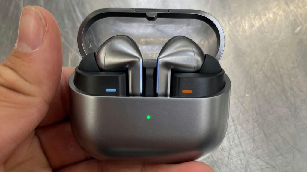 Images posted by a user on Reddit (H/T Ice Universe on Twitter/X) show the Galaxy Buds 3 Pro in the same gray color we’ve been seeing for a while now, but this is our first time seeing them in real life. As we’ve seen, the design looks a lot like Apple’s AirPods Pro, and the orange and blue accents that have shown up on Watch 7 are also clearly visible.