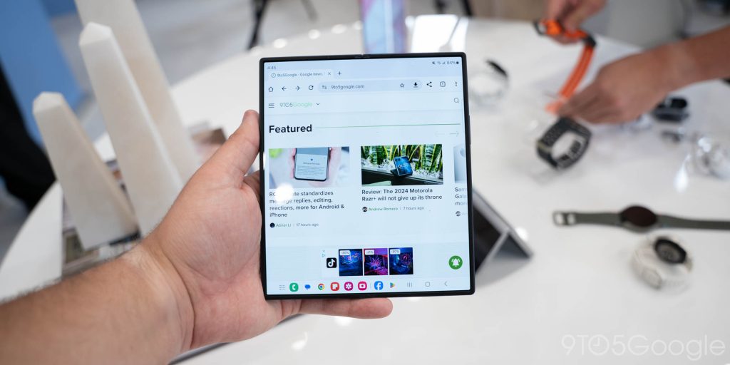 First and foremost, Samsung has updated the aspect ratio of the display. The super-narrow size of the outer display has long been criticized, but it’s now wider. The outer display features an aspect ratio of 22.1:9, wider than the 23.1:9 of the Galaxy Z Fold 5 by a slight margin. For comparison, the OnePlus Open has an aspect ratio on its outer display of 20:9, while Galaxy S24 Ultra has an aspect ratio of 19.5:9.
