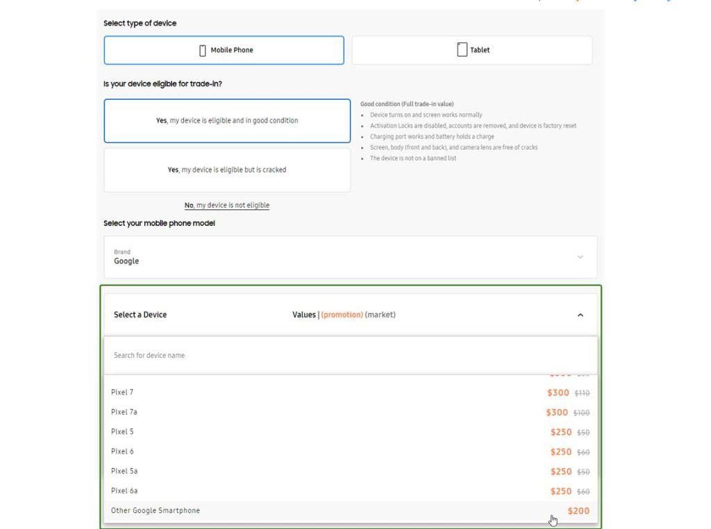 If you do see your phone in the list Samsung provides, you’ll likely see a rather decent trade-in value. As mentioned, Samsung only raises these values during special events, and it often offers the best return among other manufacturers and retailers.
