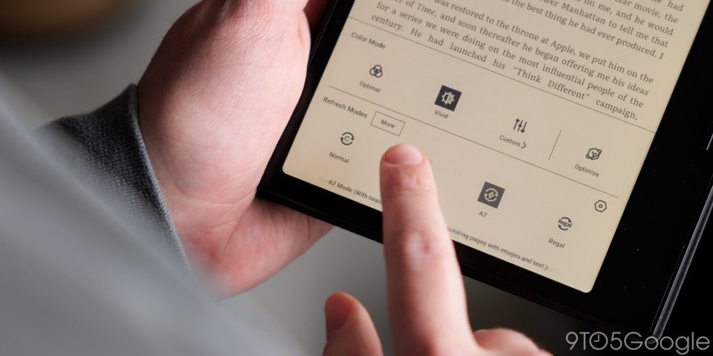 Some refresh speed modes can be tweaked to fully refresh from between 1 and 30 taps, making things a bit cleaner and clearer. Another thing to note: I highly suggest the “Regal” mode if you’re reading lots of books. This ensures the best quality with less ghosting and is optimized for content like comics and manga. I like that the Boox Go Color 7 lets you set refresh modes on an app-by-app basis because you can tailor this to the type of content you’re viewing.