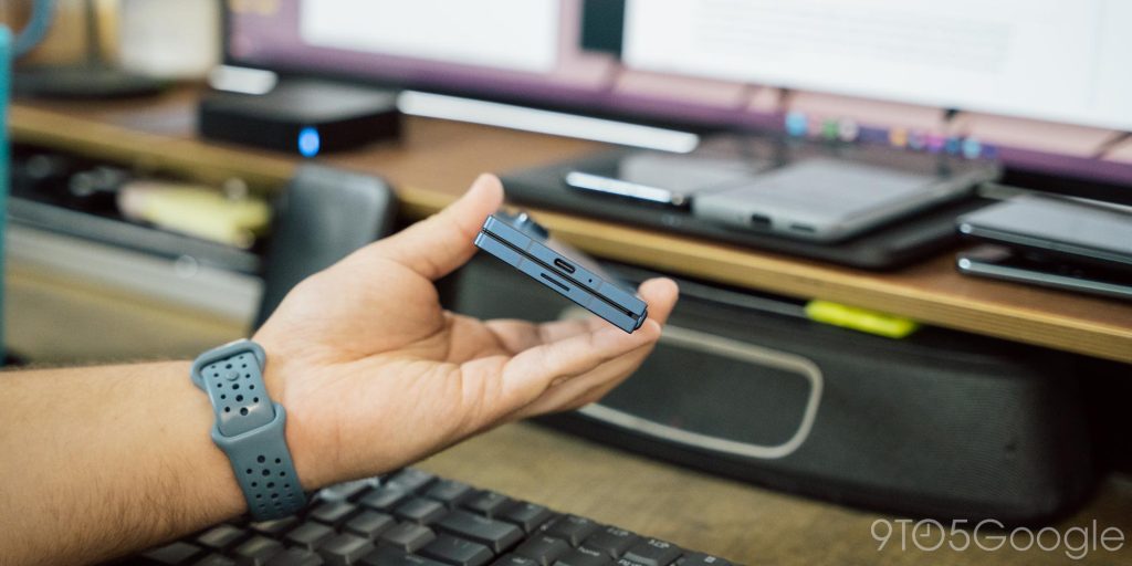 Those flat edges are a distinct change in design, too, as previous Folds have had at least somewhat rounded edges on the metal. Combined with the matte finish, this feels great, at least in short bursts. If you’re using the device closed for an extended period of time the edges kind of dig into your hand a bit, but that’s something that will be solved with a case, something that virtually everyone buying this device will be doing anyway.
