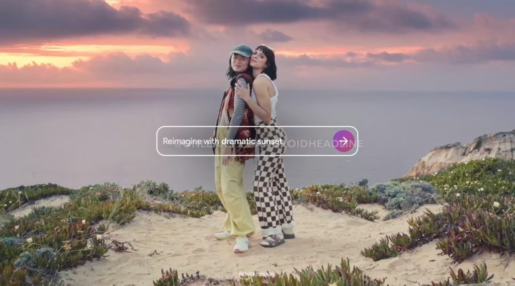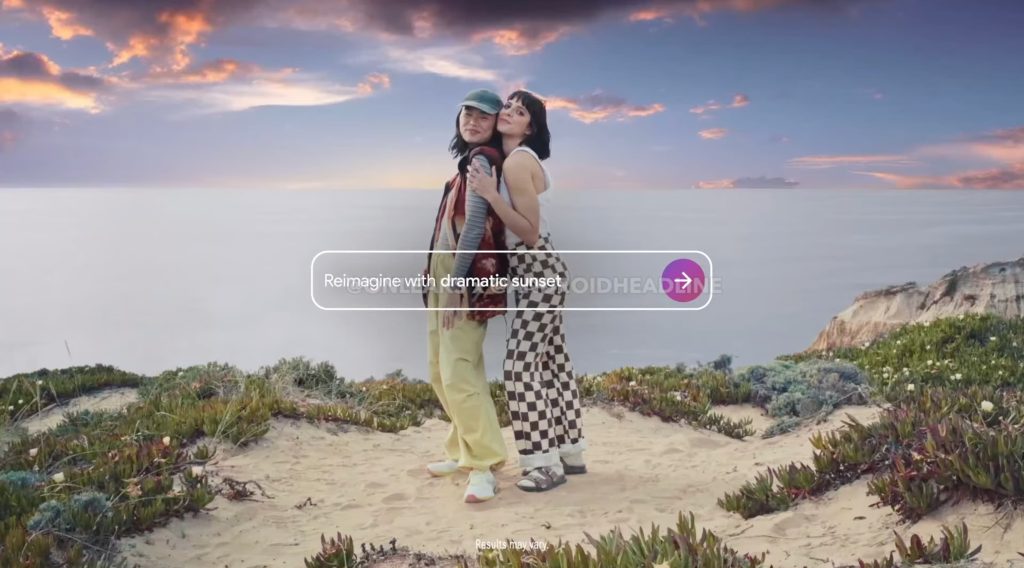 The next section is about the camera and Magic Editor, which is getting a “Reimagine with” image generation/replacement feature that lets you enter a prompt.