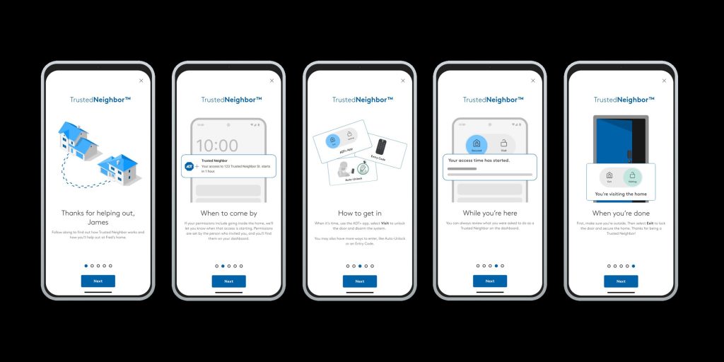 How will “Trusted Neighbor” work? There are still details we don’t know for certain, but ADT has shared a preview of the in-app experience for a visitor that explains a notification will be sent when access is available, how to use the door lock, and more.